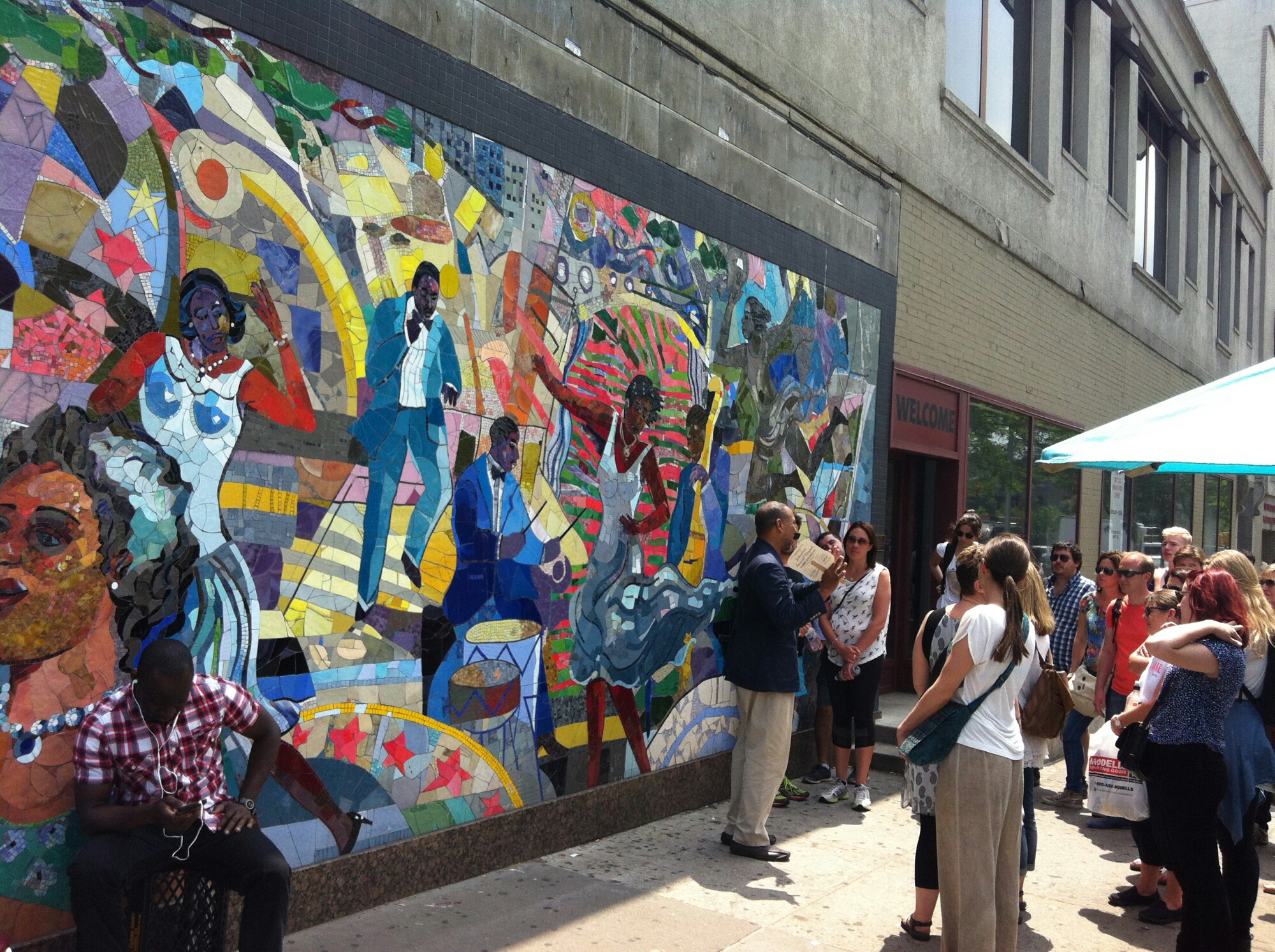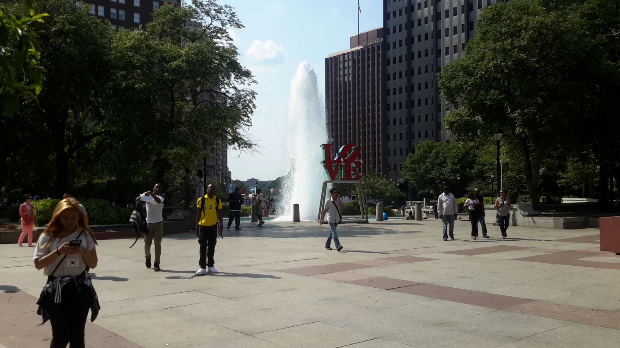 Aber mein Highlight dieses Rundgangs war für mich weder das Weisse Haus, noch eines der Monumente, sondern der Skulpturen-Garten. Diverseste Künstler die teilweise eher für ihre Bilder bekannt sind haben dort ein Kunstwerk hinterlassen. Wir sind einmal durchgelaufen und als wir am Café vorbei Richtung Ausgang gelaufen sind sehen wir zwischen den Bäumen etwas farbiges. Auf den ersten Blick dachten wir, dass es sich hierbei um ein Graffiti handeln muss. Dann haben wir aber festgestellt, das in der dunklen Ecke hinter dem Café ein grosses Mosaik zu sehen war, gut versteckt in den Bäumen. Keiner schien Interesse daran zu haben, so dass wir den Chagall ganz alleine geniessen könnten. Das klingt vielleicht übertrieben theatralisch, aber es ist wirklich sehr beeindruckend, wenn man zwischen einiger Bäume auf einer Steinbank sitzt und unbemerkt von anderen ein solches Kunstwerk betrachten kann.